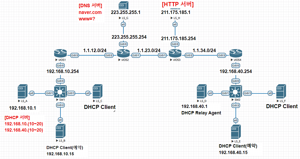 1. Non-Suppernetting 된 SuperScope[대범위] dhcp 서버의 범위를 2개로 만들어 준다. 라우터에는 secondary로 주소를 넣어준다. 나누어진 서버를 대범위로 묶어서 사용할 수 있다. 서버 옵션에는 각각의 서버