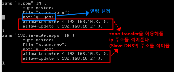 master { primary ip 주소 port 53; };