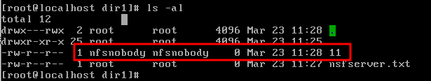 모든 호스트에 root가 있는데, 클라이언트의 root는 서버의 root의 권한을 가질 수 없다. 따라서 root_squash 는 기본값으로 클러이언트의 root는 NFS 파일 시스템에서 nobody로 매핑되도록 설정되어 있습니다.