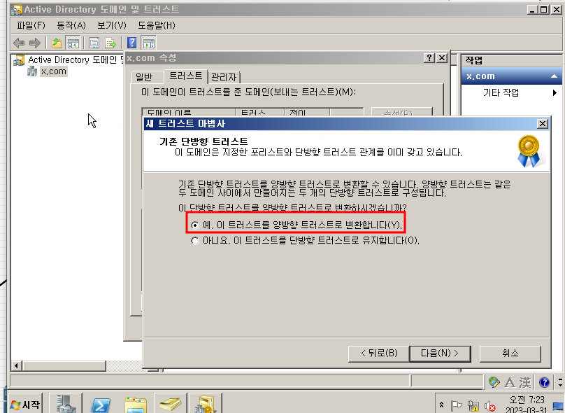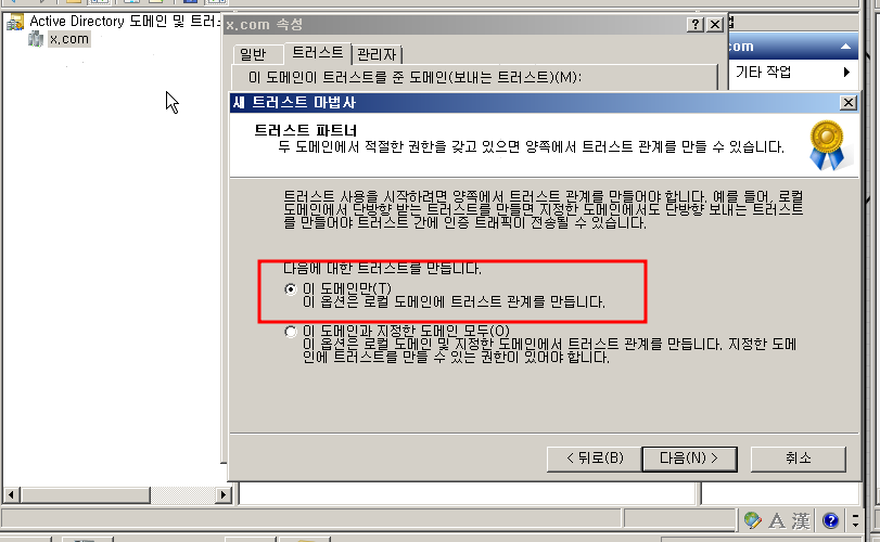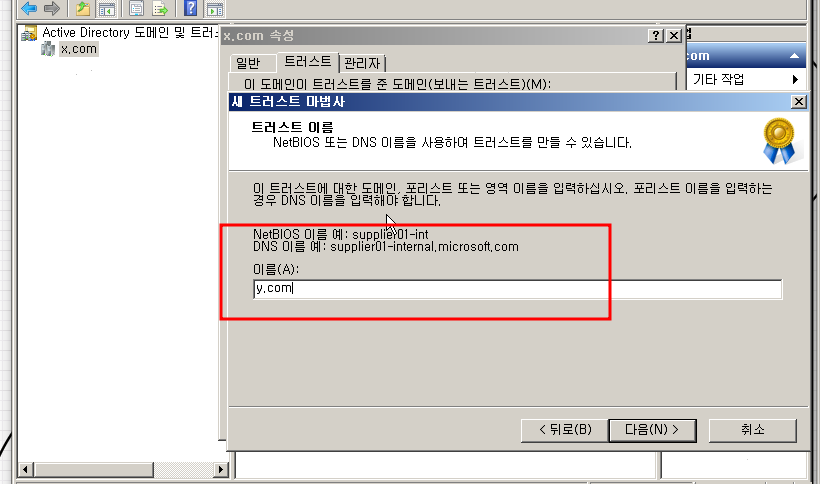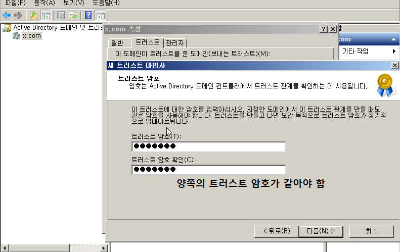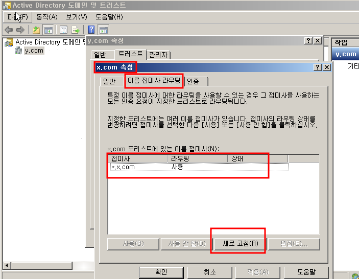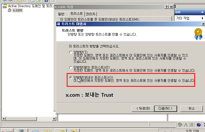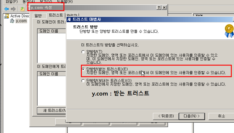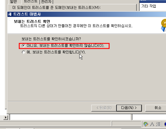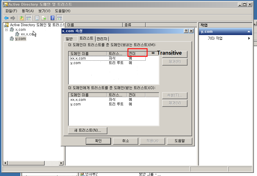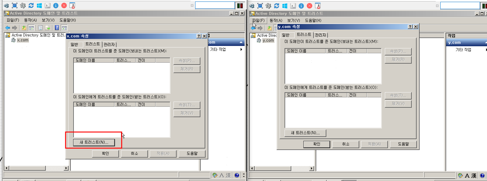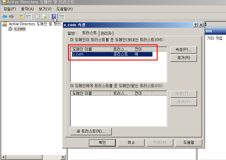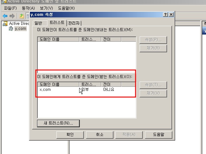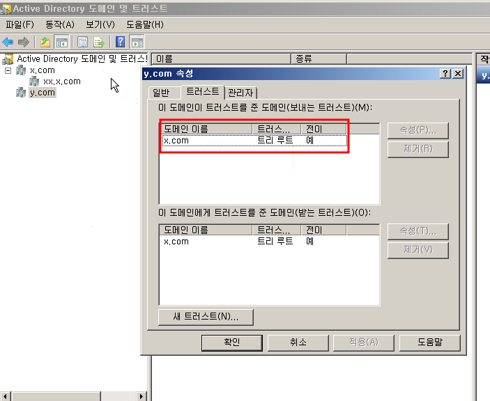 새 트러스트 를 눌르고 상대방 도메인을 쓰면 양방향으로 확인할 수 있습니다.
