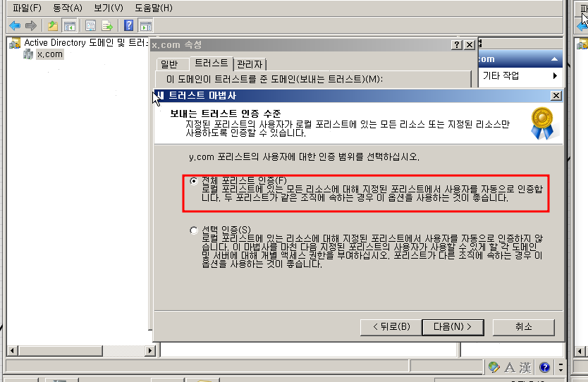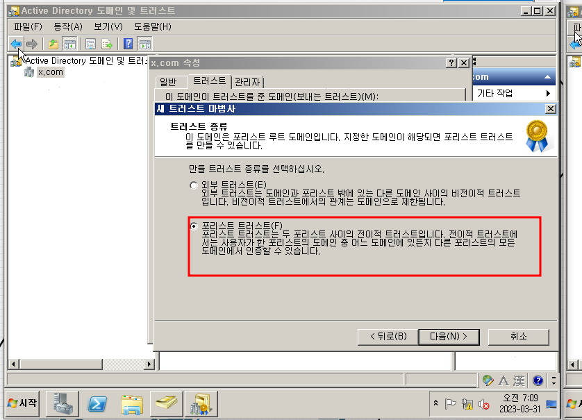 도메인이 한 포리스트에 있고 도메인이 다른 포리스트에 있습니다.