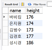 select * from usertbl limit 5; -- 5개까지만 가져오기