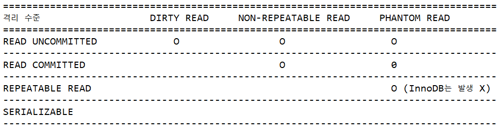 방법1 . select @@GLOBL.transaction_isolation; -- Global 정보 확인