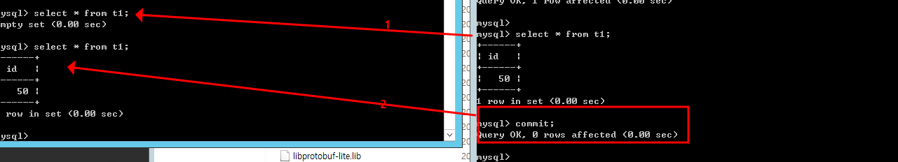 USE DB01; BEGIN; SELECT * FROM T1; 결과 1 => EMPTY SET |