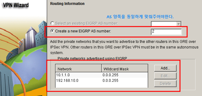 저는 라우팅 프로토콜로 eigrp 선택하여 설정합니다.