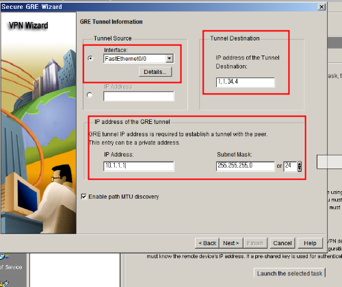 그림2의 tunnel Source 에는 tunnel을 연결해줄 인터페이스를 클릭해주고, destination은 목적지인 상대쪽 주소를 적어줍니다.