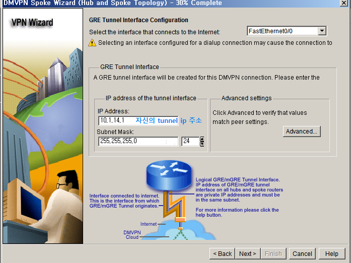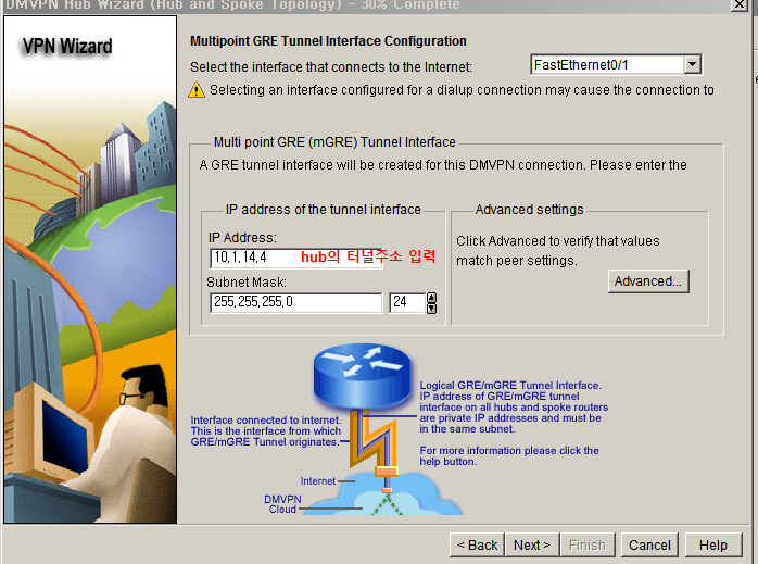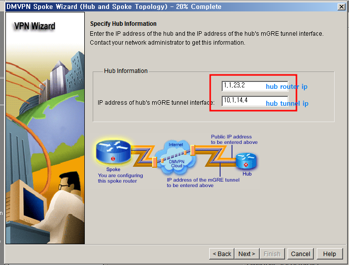 hub router의 ip를 적어주고, hub tunnel의 ip 를 적어줍니다.