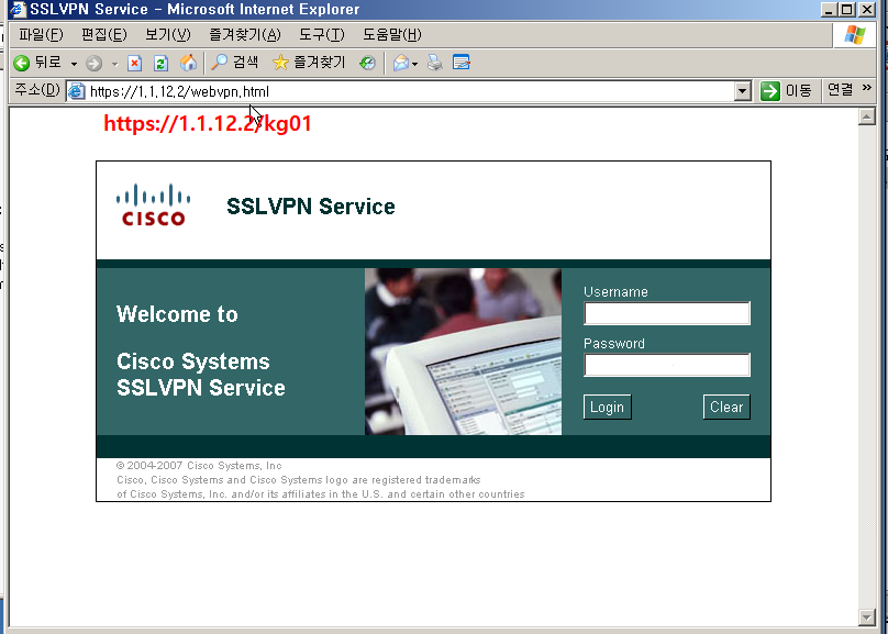 https://1.1.12.2/kg01로 접속한 후 그림1에서 처럼 username과 password에 내가 만들어준 유저 아이디와 비밀번호를 넣어줍니다.
