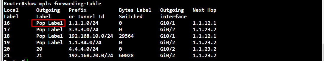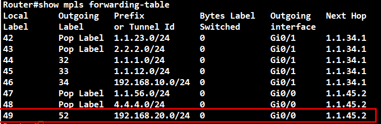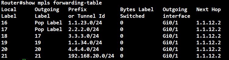 show mpls forwarding-table