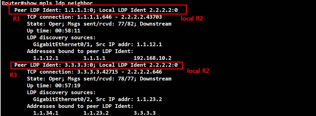 show mpls ldp neighbor