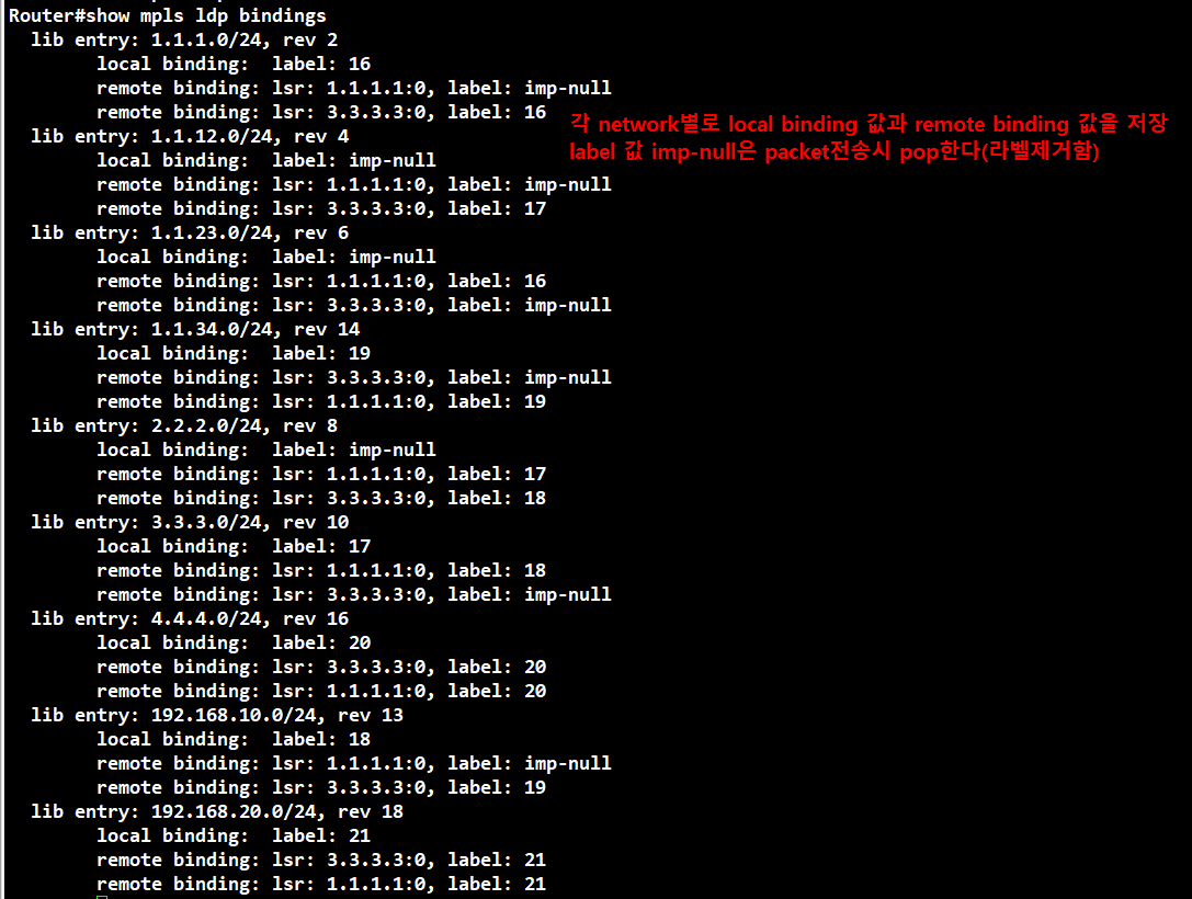 mpls ldp router-id loopback 0 => loopback이 없다면 물리적 interface ip 사용