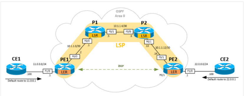 P = Provider router : 고객 라우터와 직접 연결되지 않은 mpls router