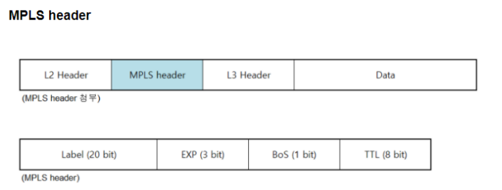 L2 header 와 L3 header 사이에 4 바이트의 mpls header 를 추가한다.