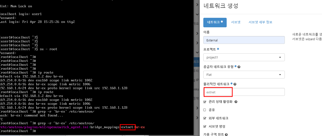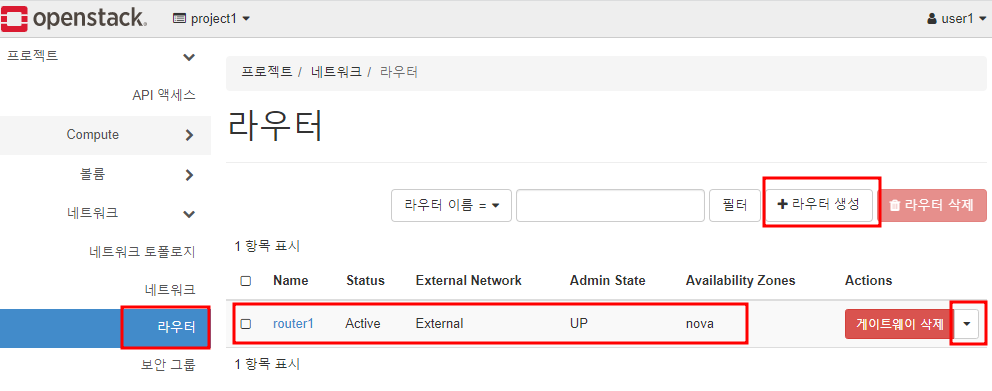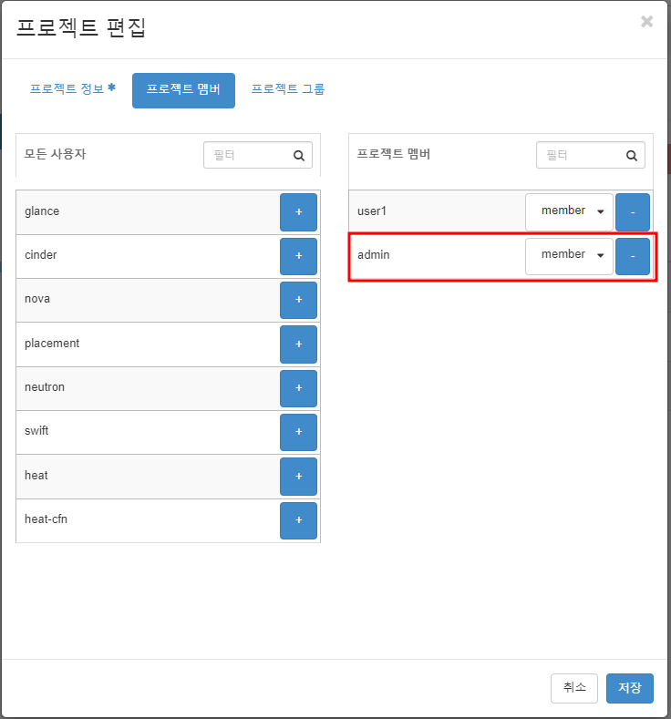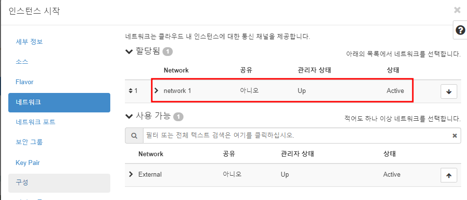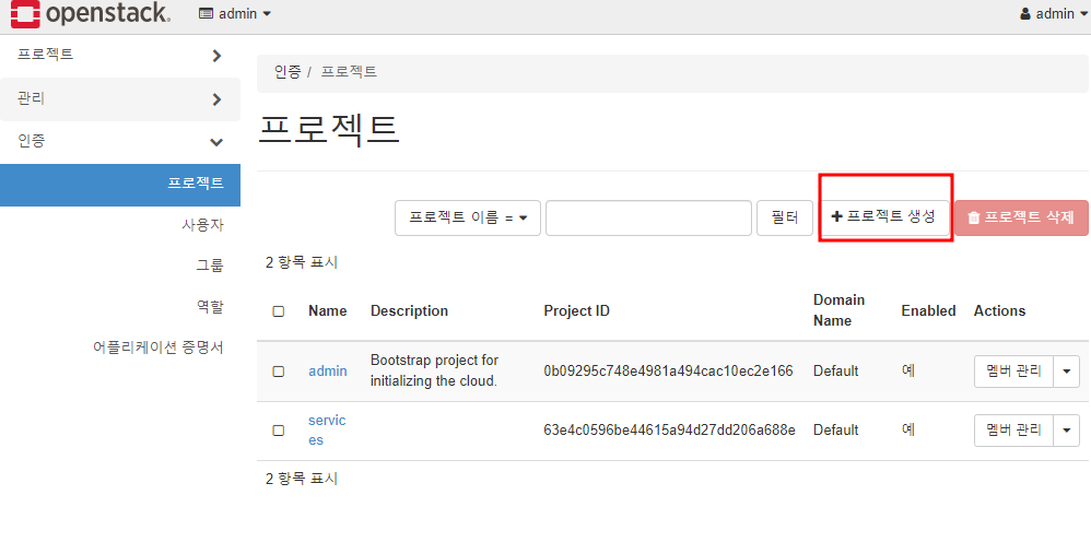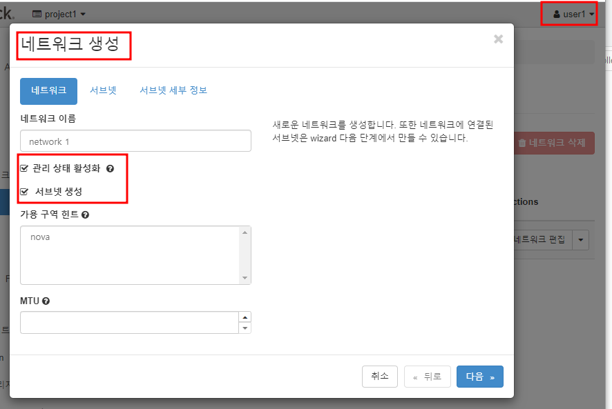network는 admin 계정에서 보이는 network탭과 일반계정에서도 보이는 project - network가 다르다.