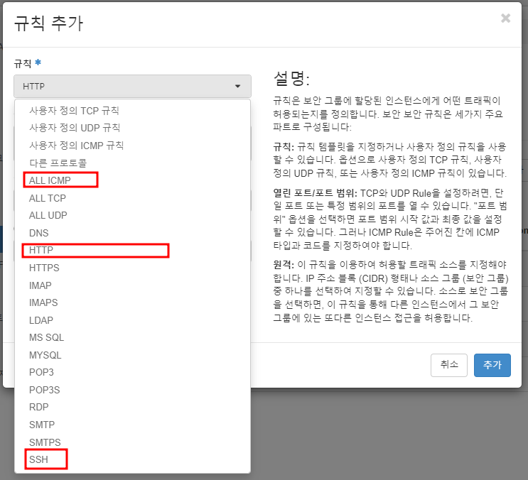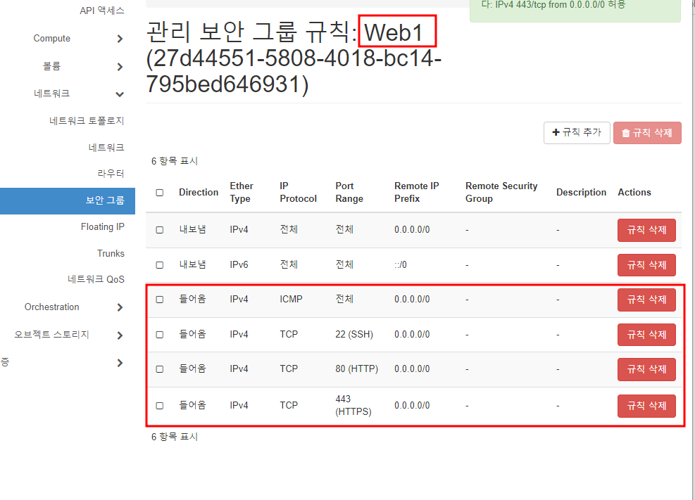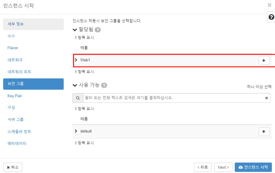 보안 그룹으로 web1을 만들어줍니다. user2 에서는 web2또한 만들어줍니다.