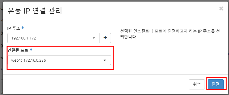볼륨 연결관리에서 web1과 볼륨 연결해제한 후, web2와 볼륨을 연결합니다.