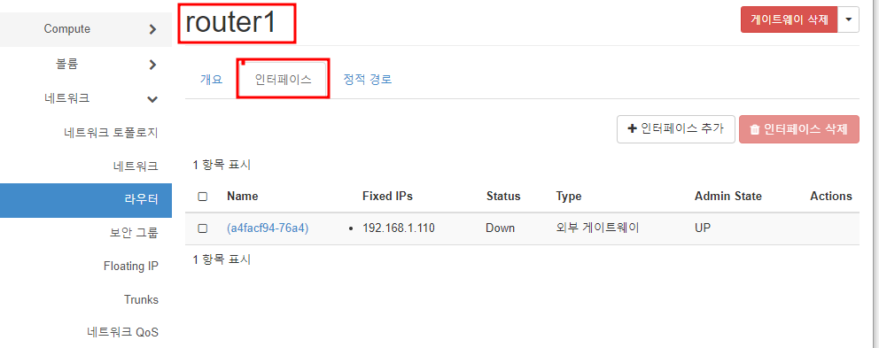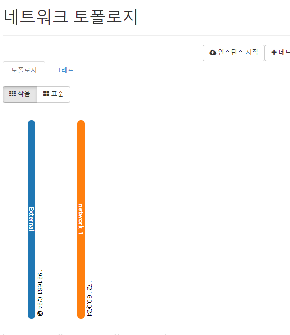 이제 network topology에서 네트워크 구성을 확인해보면 외부망과 내부망 사이에 connection이 없는 상태임을 확인할 수 있다. public과 network1을 이어줄 라우터 만들어서 연결한다