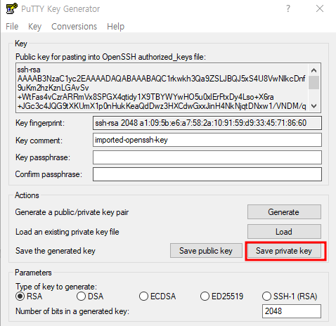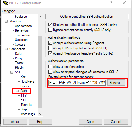 만들어진 .ppk 키 파일을 아래의 위치에 첨부하고,