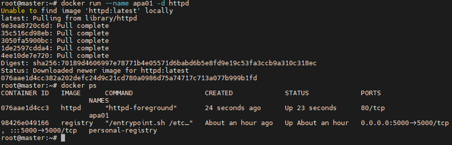 step 2. httpd를 백그라운드로 시작하는 apa01 컨테이너 생성