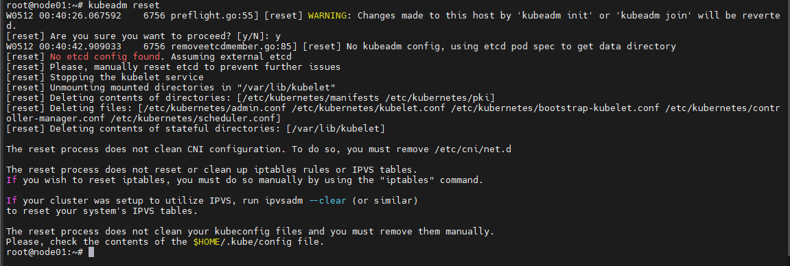 # sudo kubeadm reset => 클러스터 해제 명령어