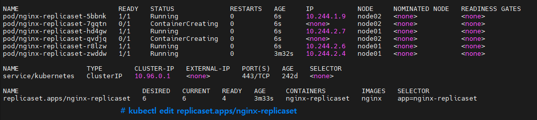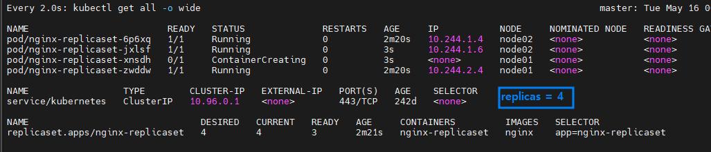# kubectl scale replicaset.apps/nginx-replicaset --replicas=4