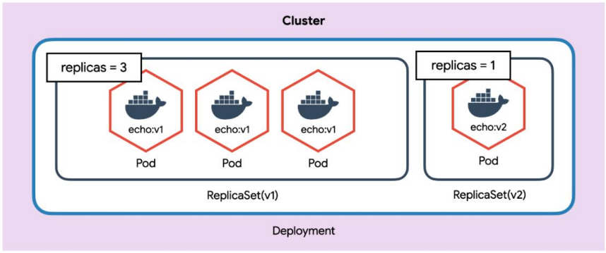 클러스터의 파드의 실행을 항상 안정적으로 유지하는 것을 목표 로 명시된 파드 개수에 대한 가용성을 보증하는데 사용됩니다. 만약 애플리케이션 오류나 노드 장애 등으로 파드가 정지된 경우 레플리카셋 이 자동으로 새로운 파드를 시작합니다.