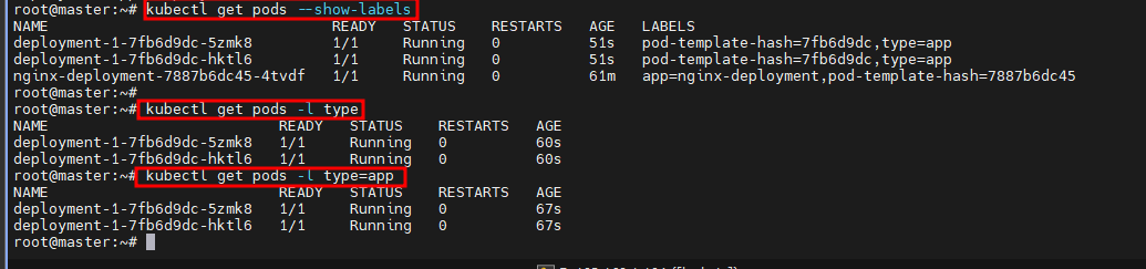# kubectl get pods -l type=app //-l (label)옵션 사용하기