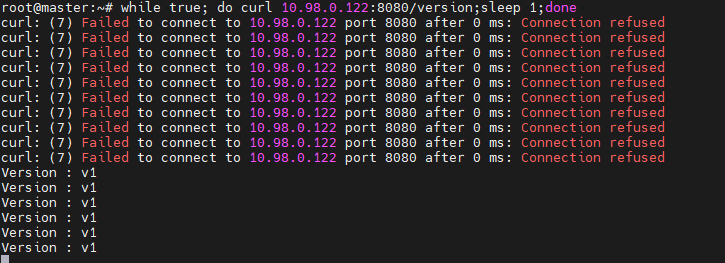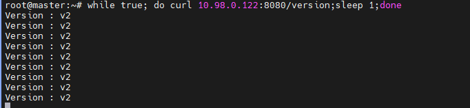 root@master:~# while true; do curl 10.96.251.8:8080/version; sleep 1; done