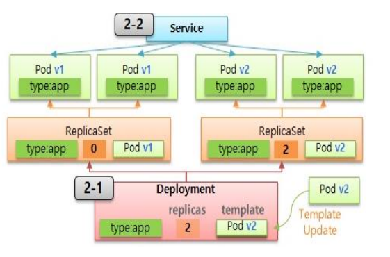 ReplicaSet 확인 : 기존 파드 v1은 2->0이 되고, v2는 2개가 생성됨 # watch kubectl get all –o wide