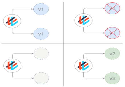 - 하지만, 이전의 버전과 새로운 버전이 공존하는 시간이 발생하는 단점이 있음
