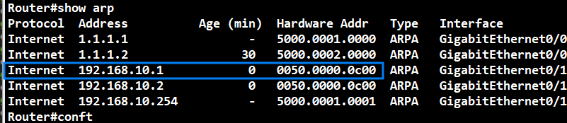 = > 현재 192.168.10.254 라우터에서 show arp를 하였을 때, 192.168.10.1의 주소가 hacker의 mac 주소로 되어있습니다.