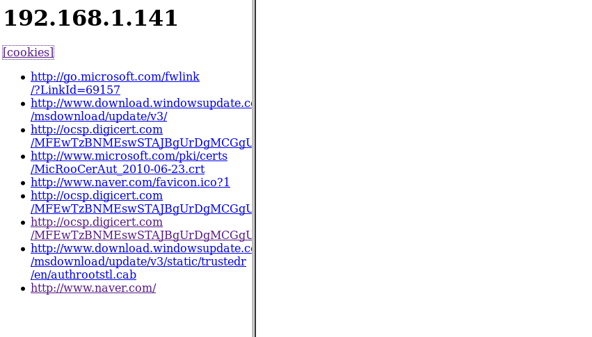 Sidejacking 같은 네트워크 대역(Local)을 사용하는 다른 사용자의 쿠키값을 가로채 로그인된 사용자의 E-Mail이나 웹페이지를 훔쳐보는 기술