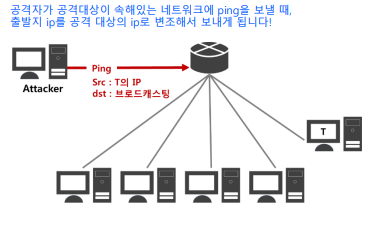 - 호스트들은 IP broadcast 주소로 전송된 ICMP 패킷에 대하여 응답하지 않도록 설정한다.