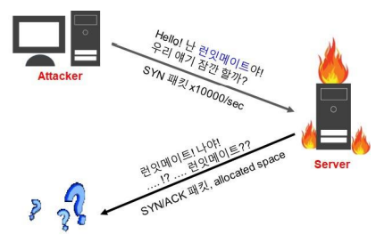 . SYN Flooding 공격과 같이 타겟의 자원 고갈로 인한 서비스 장애를 유발