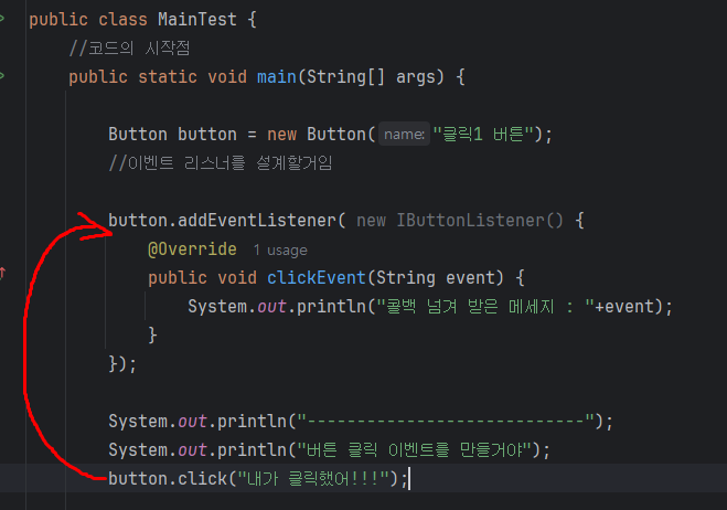 System.out.println("버튼 클릭 이벤트를 만들거야");