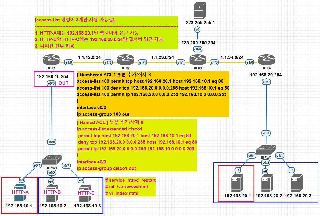 1.HTTP-A에는 192.168.20.1.만 웹서버에 접근 가능