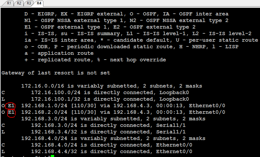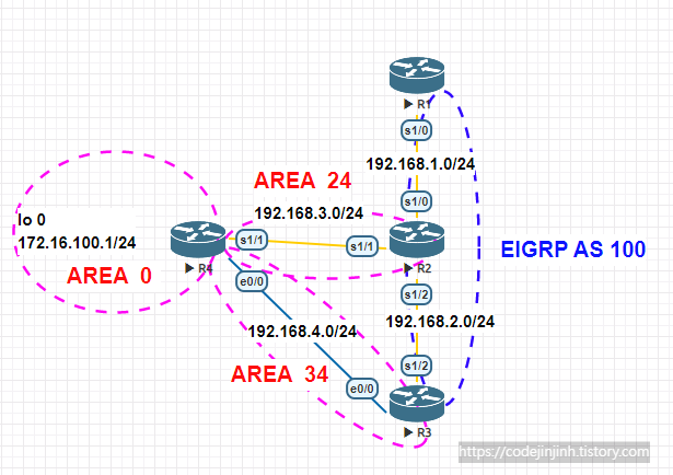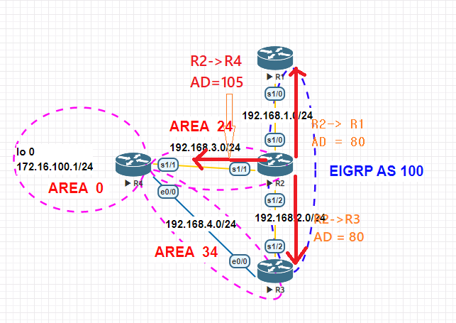 redistribute eigrp 100 metric-type 1 subnets network 192.168.3.0 0.0.0.255 area 24