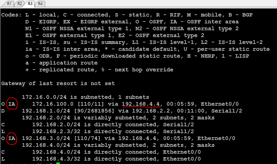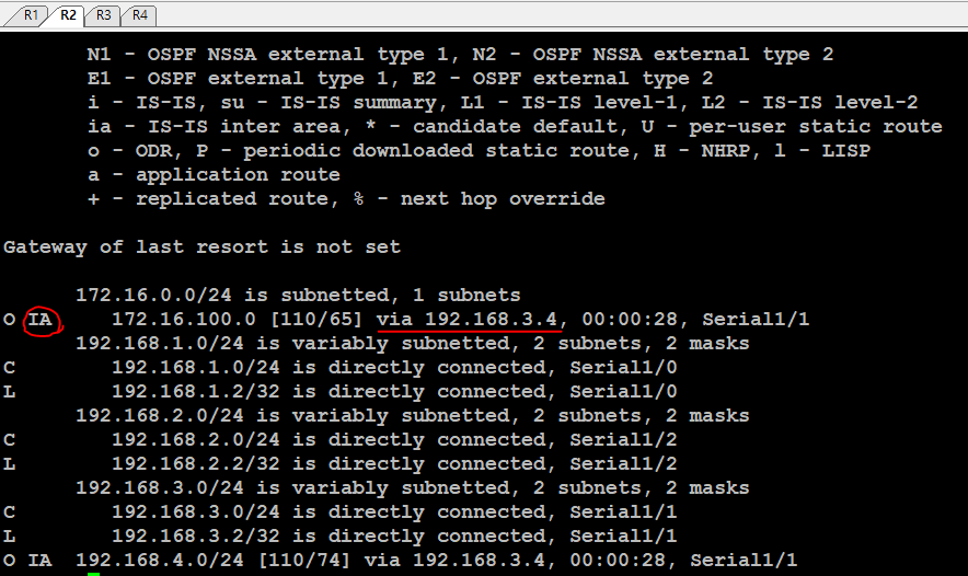 <R2> 제일 가까운 192.168.3.0 을 거쳐서 area 0으로 간다.