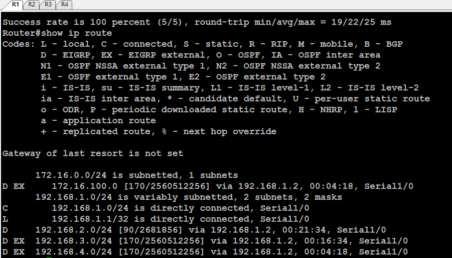 그 결과 , 원래 R2에서 R4로 가려면 기본 ospf의 110이 제일 가까워서 192.168.3.0의 대역대로 갔었지만,