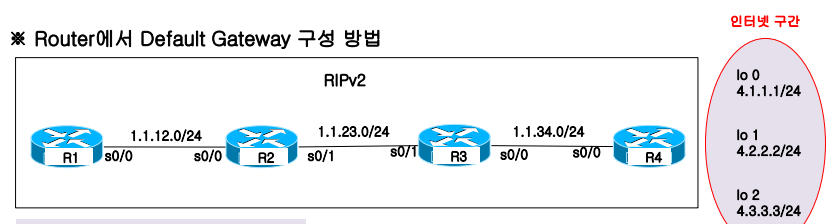 **※ ip default-network 1.0.0.0 (목적지 네트워크)라고 입력하면