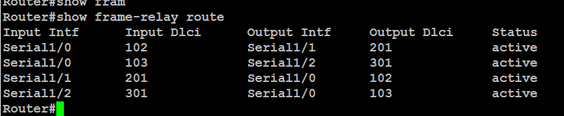 Router(config-if)#frame-relay route 201 int s1/0 102