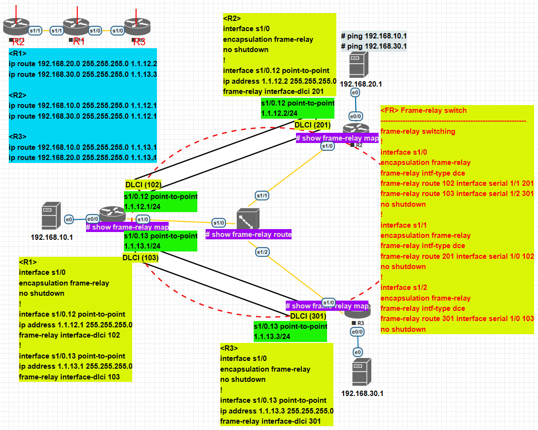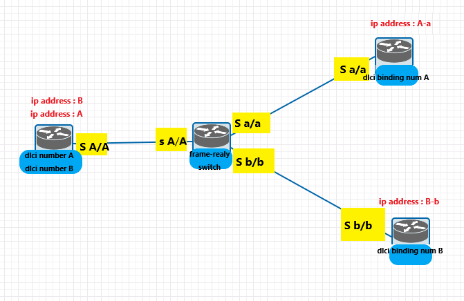 frame-relay route [dlci number A] interface serial a/a(연결할 방향) [dlci binding num A]