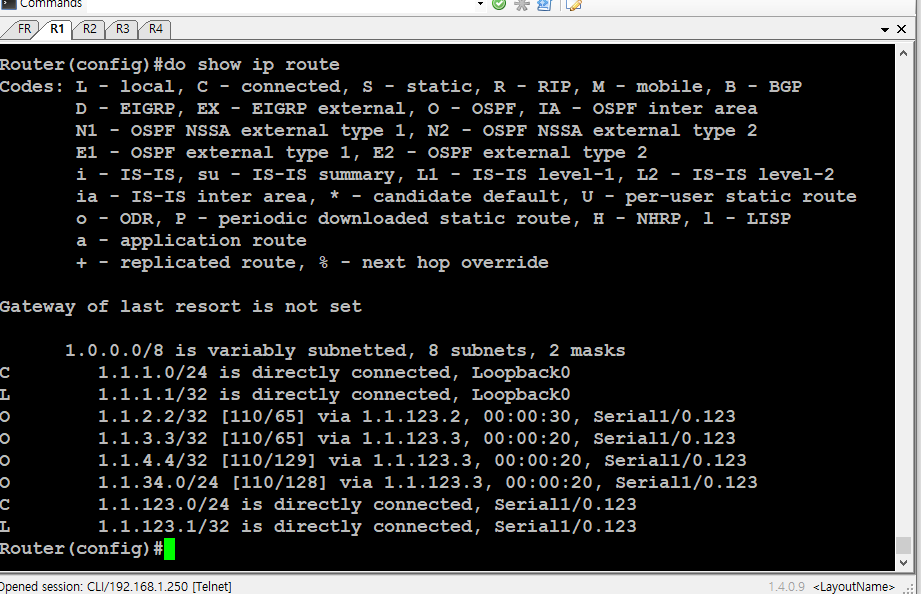 ip split horizon ⇒ looping을 방지하기위한 명령어 기본적으로 적혀있다.