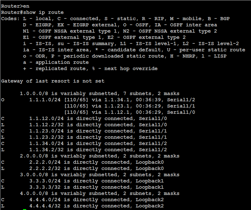 두 조건의 결과로 4.4.4.0는 s1/1,s1/0의 두 통로로는 통과할 수 없게되어 한개의 통로만 남게되었다.