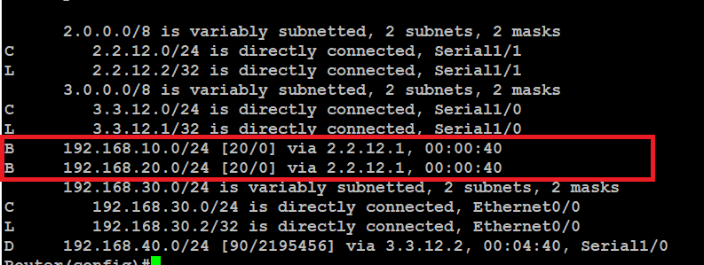 network 192.168.40.0 mask 255.255.255.0