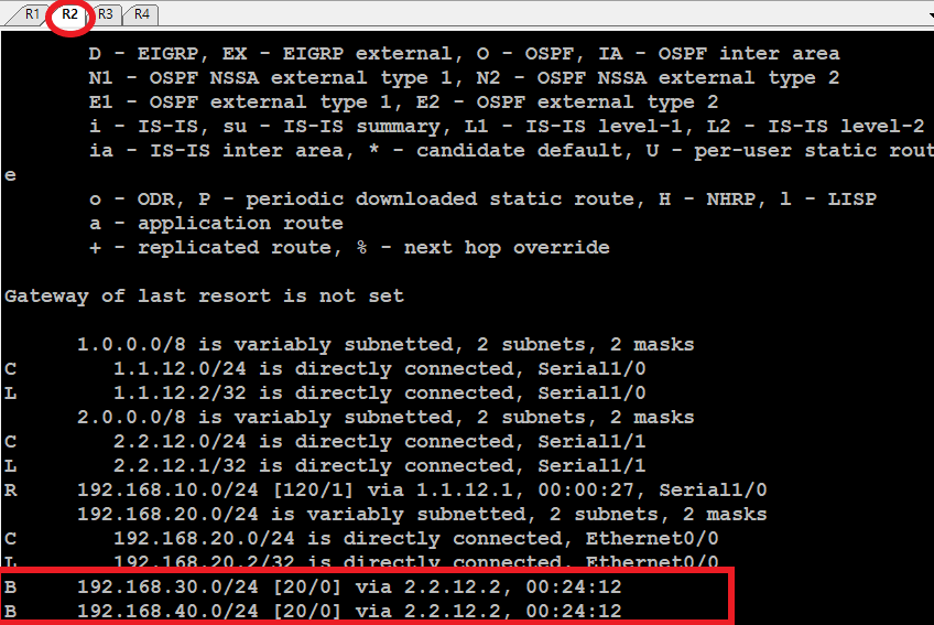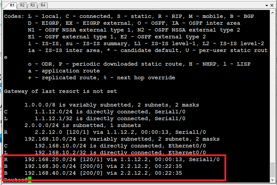 R1은 iBGP 로 다른 as에서 받은 것들은 ad 200 을 갖는다.