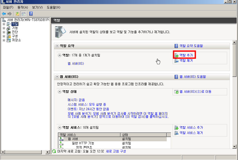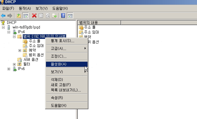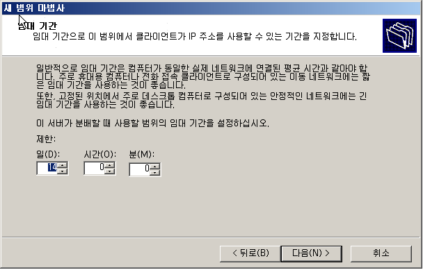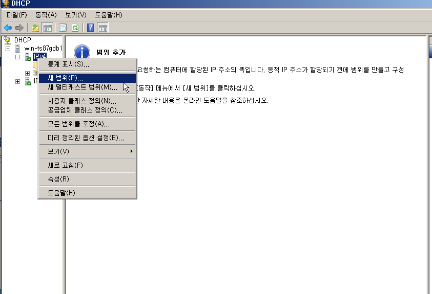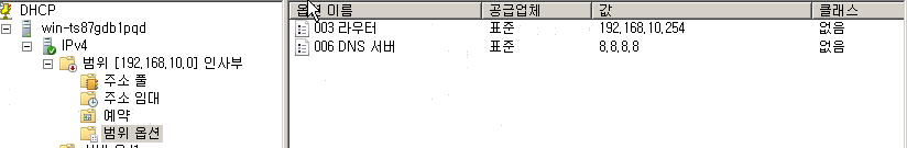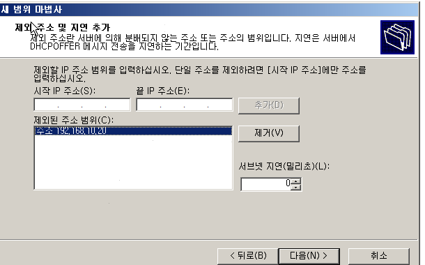 DHCP 서버를 클릭하여 설치 합니다. => 안의 설정사항은