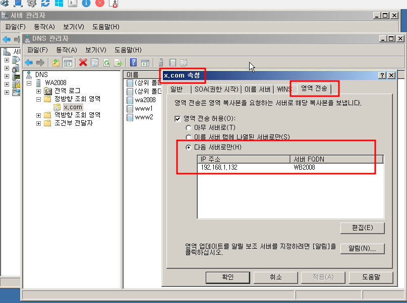NS, SOA, A레코드만 포함된 영역의 복사본을 만든다.