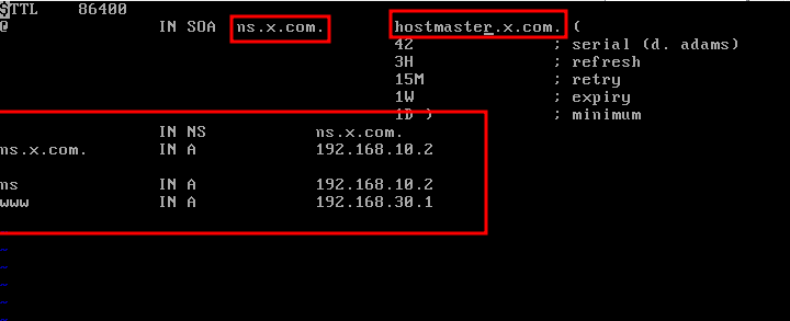 vi /var/named/x.com.zone