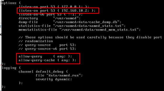 listen-on port 53 을 추가로 작성해 준다.
